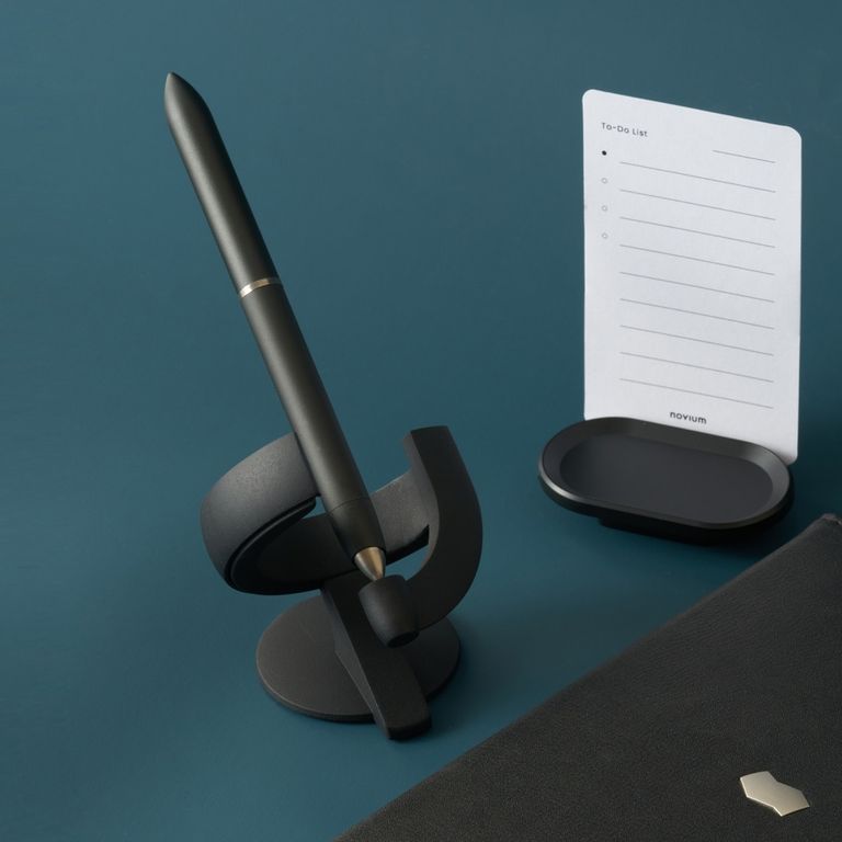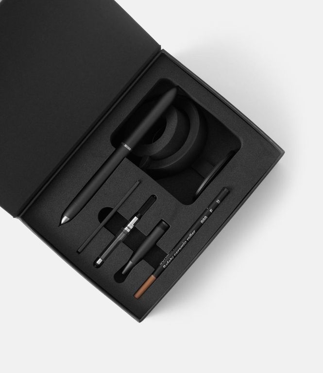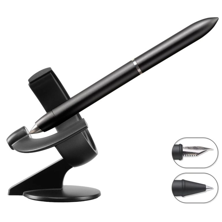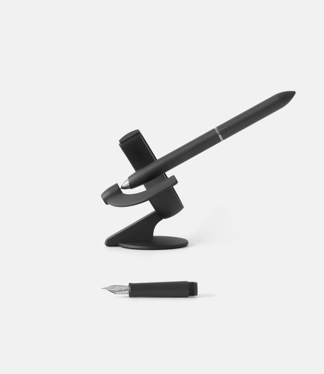 Третья версия инновационной ручки Hoverpen 3.0 с модульным корпусом, позволяющим выбирать между перьевой ручкой и роллером, обеспечивает баланс на магнитном пьедестале под углом 60 градусов. Неодимовые магниты удерживают алюминиевый корпус и возвращают его в стабильное положение. Перо и роллер произведены компанией Schmidt (Германия).