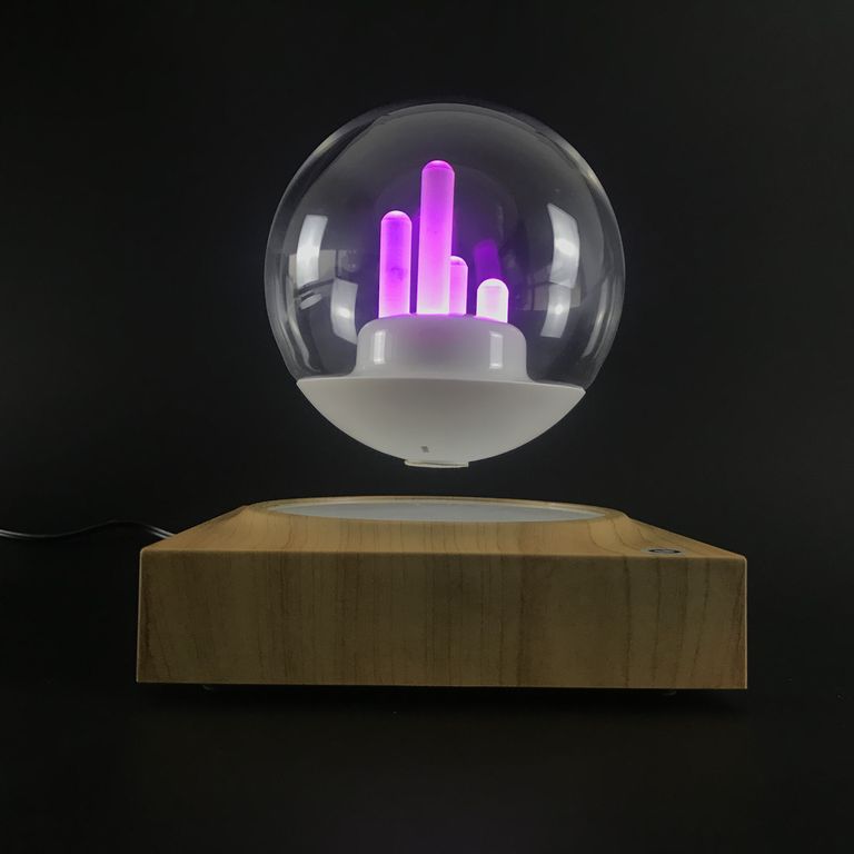 Стеклянный шар со светящимися кристаллами внутри, парящий над подставкой - мистика!